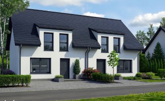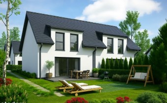 Funkcjonalny i przestronny dom jednorodzinny dwulokalowy o powierzchni 115 m², usytuowany na działce ok. 330 m² (660 m² dla całego bliźniaka).